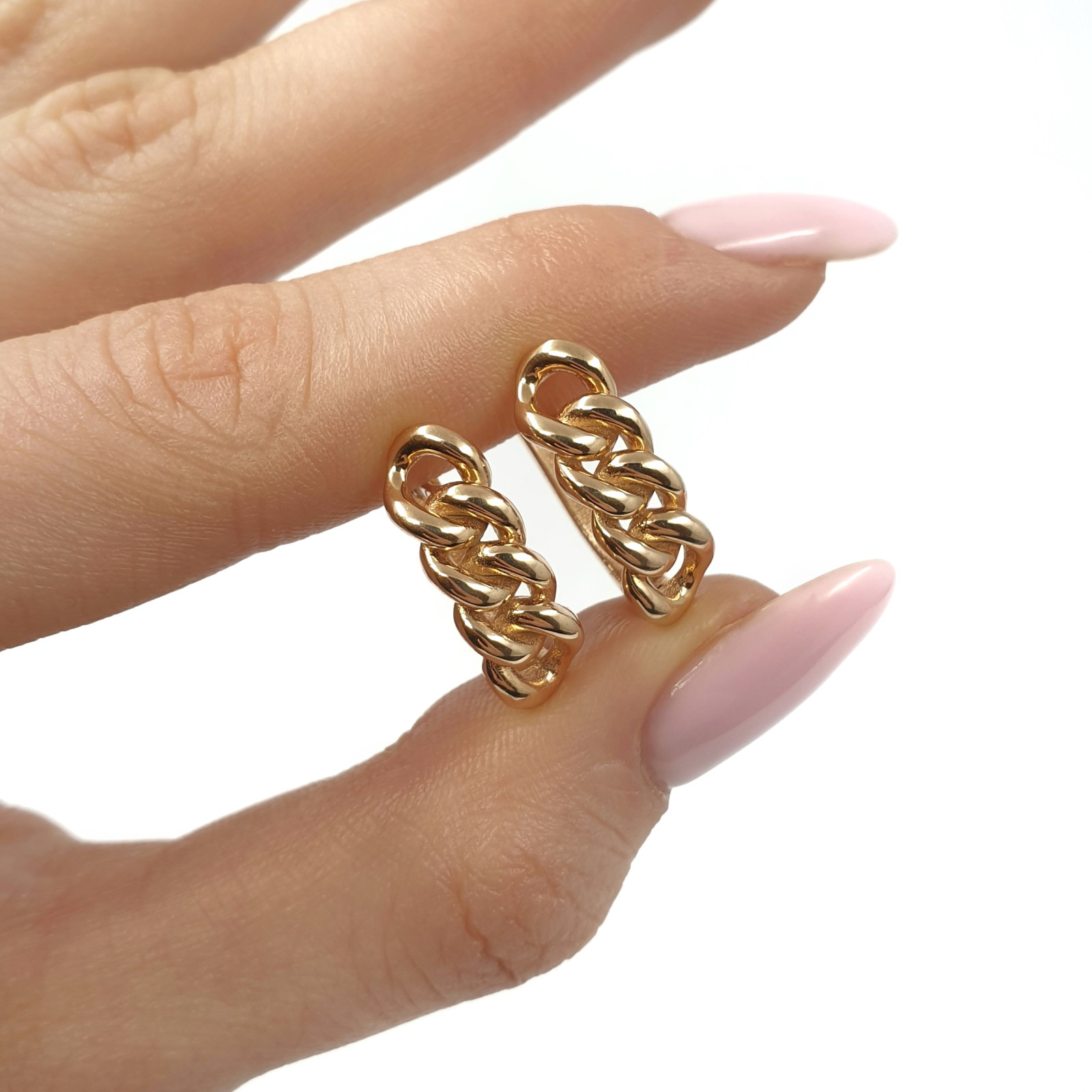 Modernie sarkanā zelta auskari izceļas ar stilīgu, pītu ķēdītes rakstu, kas rotaslietām piešķir izteiksmīgumu un modernitāti. Siltais zelta tonis labi sader ar dažādiem tēliem, padarot auskarus par universālu akcentu gan ikdienai, gan svētku reizēm. Ērtā angļu aizdare nodrošina ātru, drošu un ērtu uzvilkšanu. Šī ir eleganta izvēle sievietēm, kuras novērtē kvalitāti un modernu dizainu.