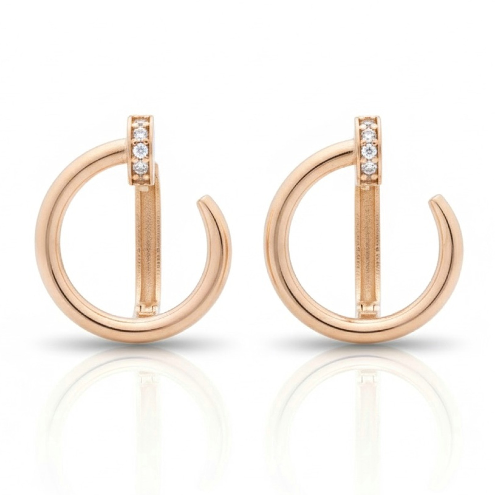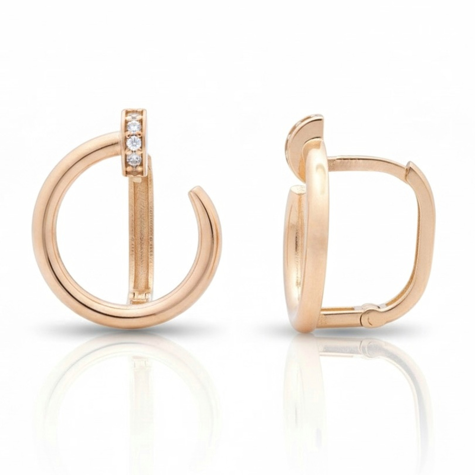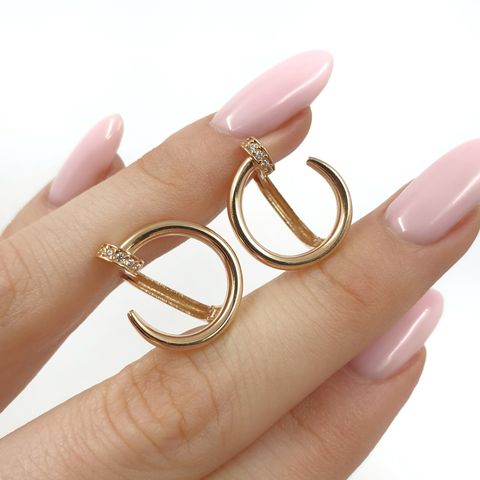 Modernie sarkanā zelta auskari izceļas ar elegantu, minimālistisku formu un smalki integrētām cilpiņām, kas piešķir tiem unikālu mirdzumu. To dizains apvieno modernu estētiku un greznu vienkāršību, padarot tos piemērotus gan ikdienai, gan īpašiem gadījumiem. Ērta un ātra aizdare nodrošina ērtu nēsāšanu un drošību. Šī ir stilīga izvēle sievietei, kura novērtē kvalitāti un modernu, laikmetīgu dizainu.
