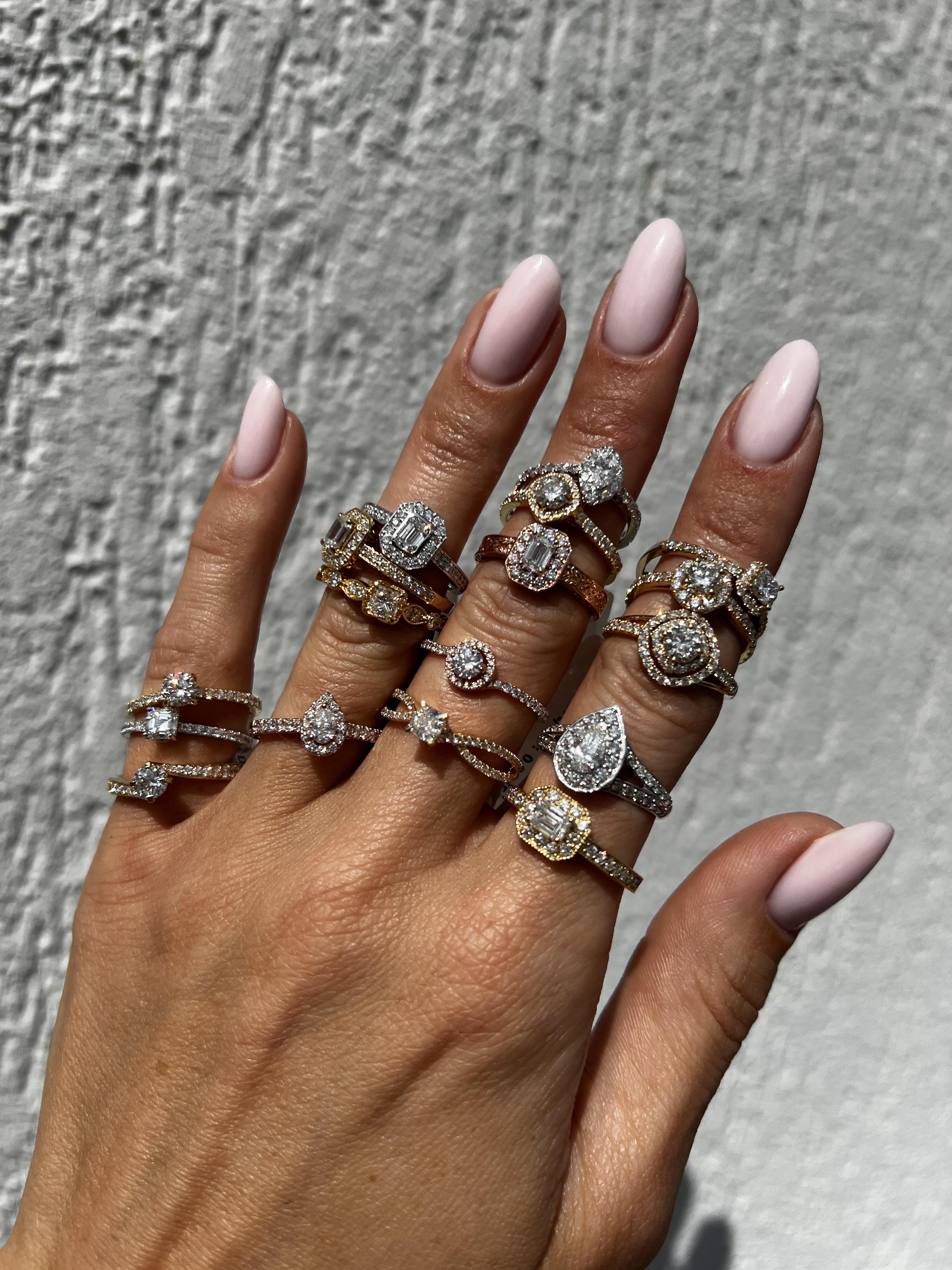 Siūlome įvairių tipų sužadėtuvių žiedus, pritaikytus skirtingam skoniui ir stiliui:• Klasikinis sužadėtuvių žiedas su vienu deimantu – laikui nepavaldi elegancija, išryškinanti centrinio akmens spindesį ir grožį.