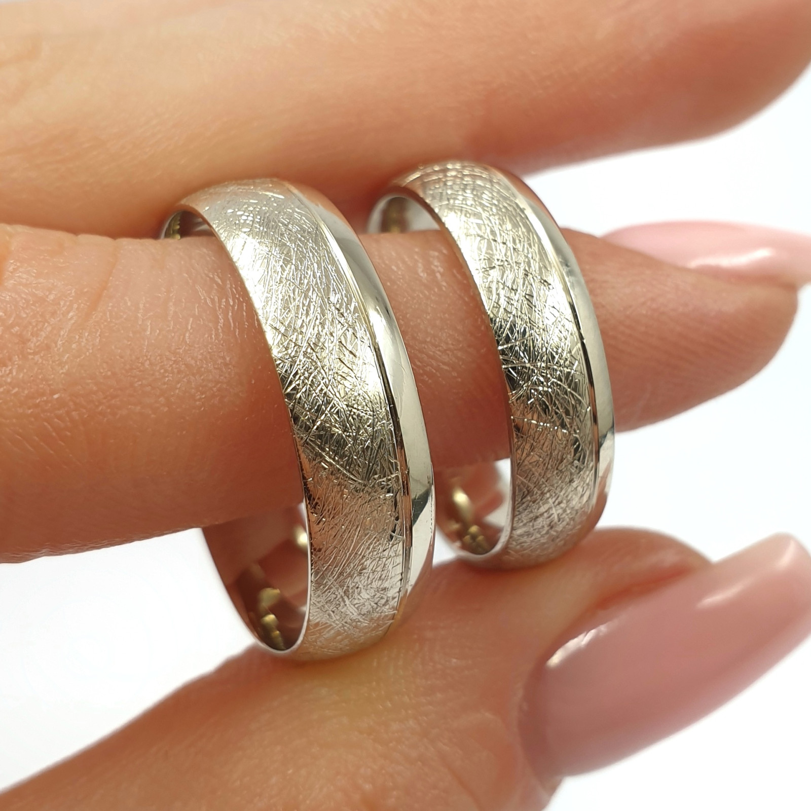 Balto aukso vestuviniai žiedai su matine tekstūra – elegantiškas ir modernus pasirinkimas poroms, vertinančioms subtilų dizainą bei laikui nepavaldžią estetiką. Švelniai matinis paviršius suteikia žiedams išskirtinį charakterį, o baltas auksas pabrėžia jų rafinuotą ir prabangų įvaizdį.