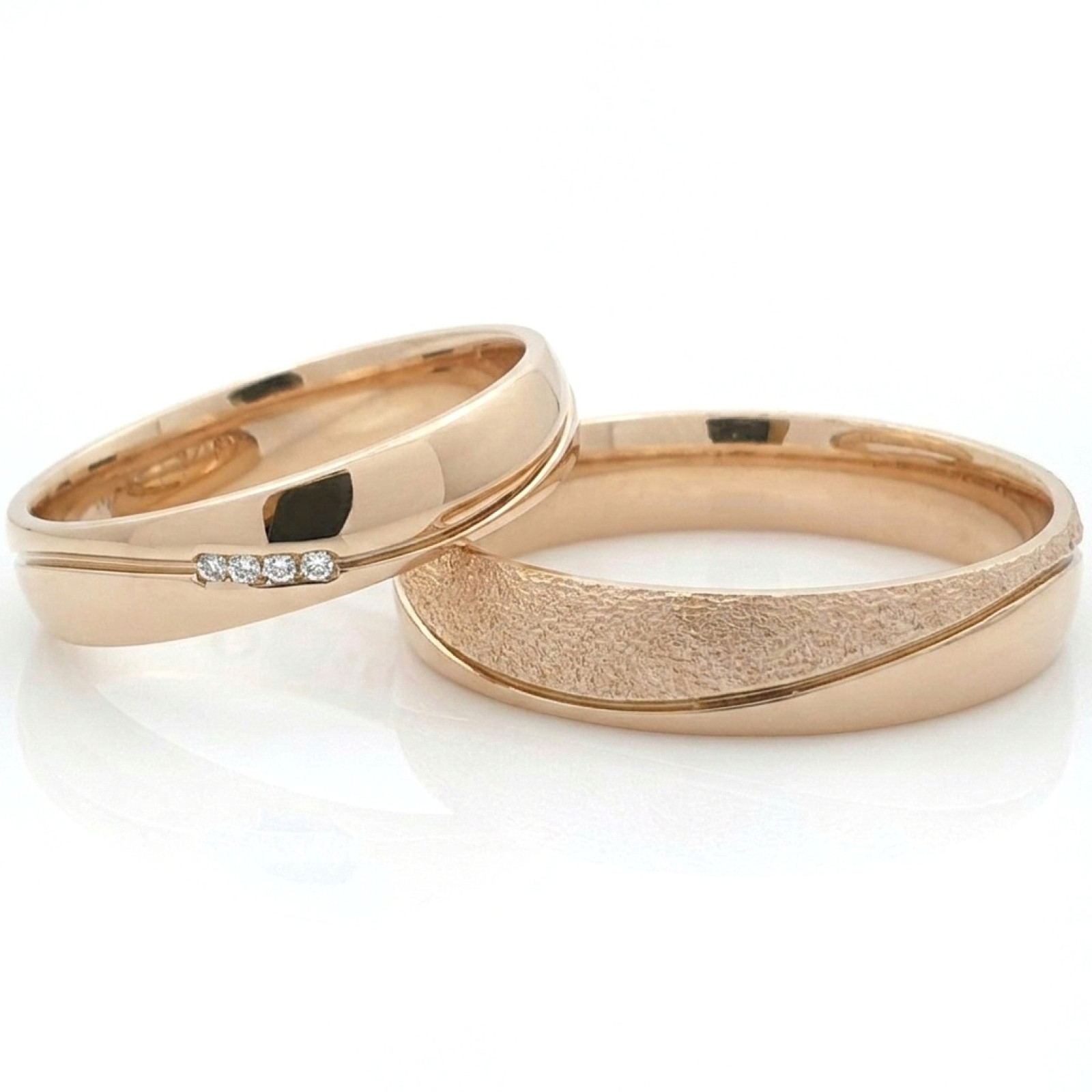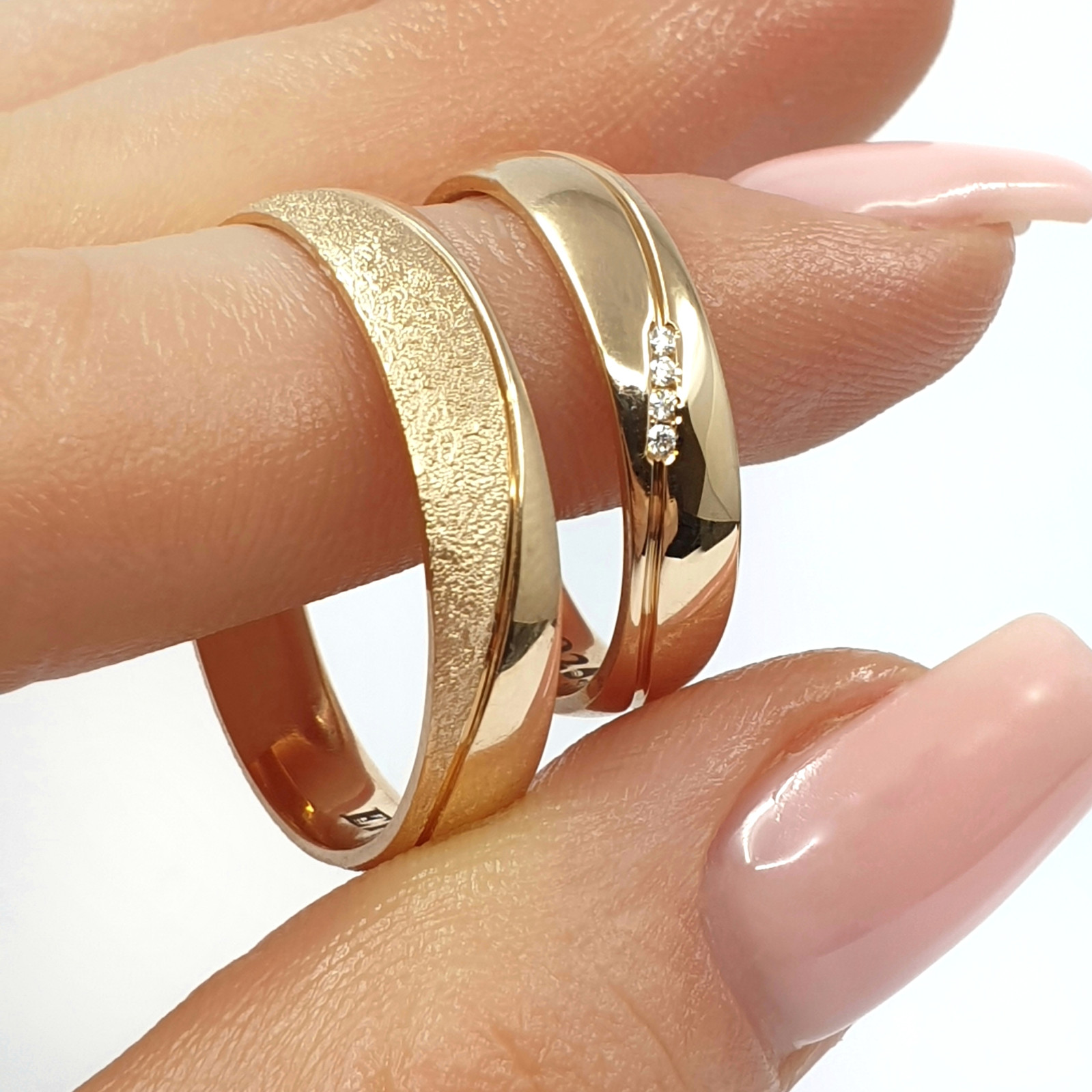 Šie žiedai gali būti gaminami individualiai pagal jūsų pageidavimus – pasirenkant aukso prabą, žiedo plotį ar deimantų išdėstymą. Tai vestuviniai žiedai, kurie taps ne tik stilingu papuošalu, bet ir prasmingu jūsų meilės istorijos simboliu.