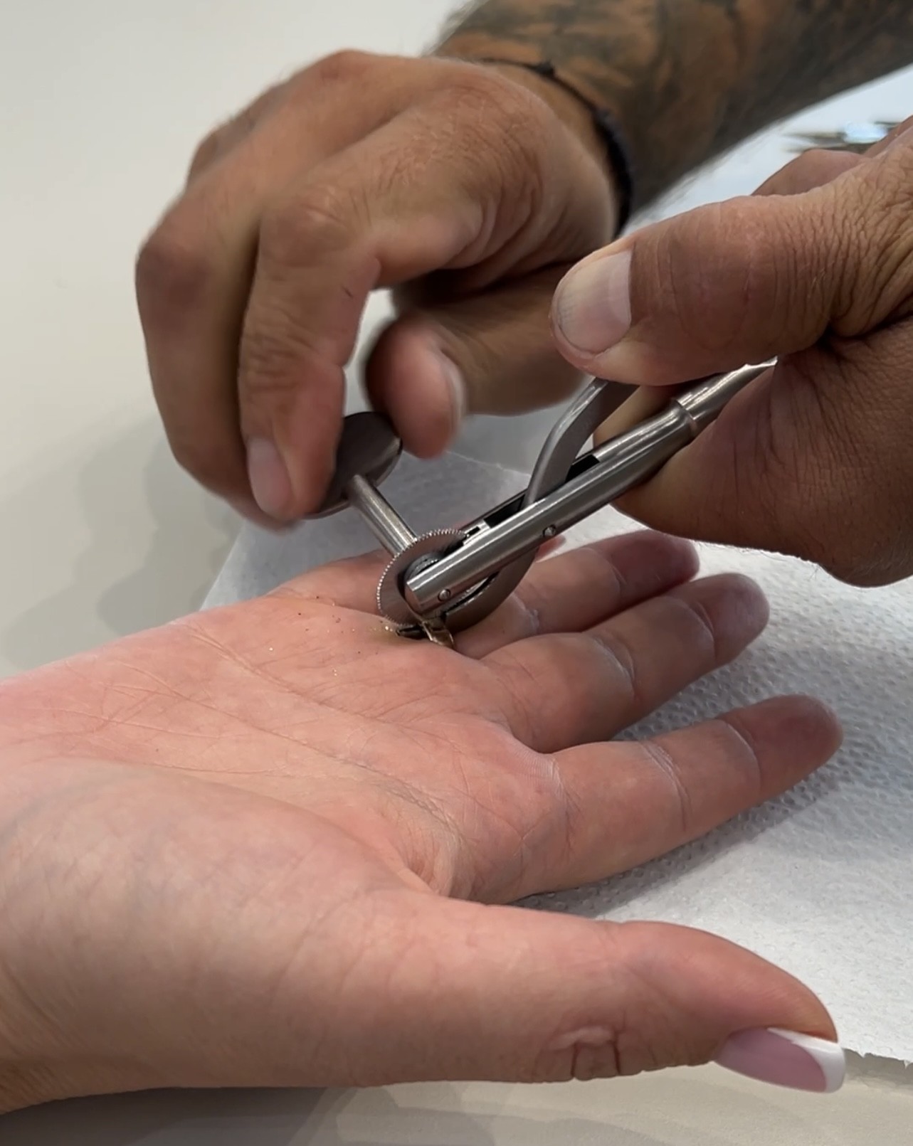 Teikiame žiedo nuėmimo paslaugą, kai dėl įvairių priežasčių nebegalite nusiimti žiedo. Mūsų profesionalūs juvelyrai naudoja specialius įrankius, leidžiančius tai padaryti greitai, saugiai ir neskausmingai.